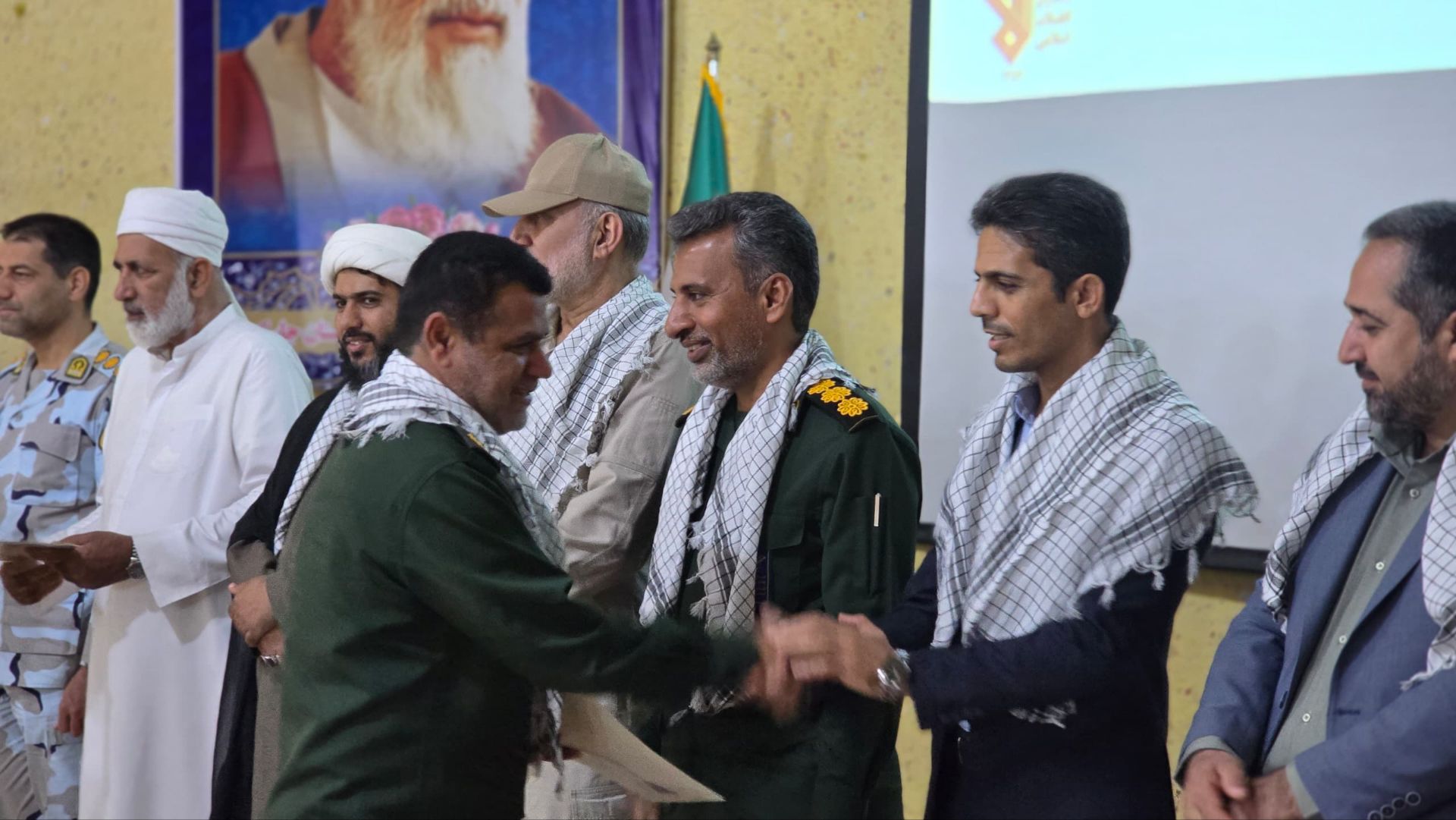 این جشنواره با حضور سردار علی نژاد همرزم حاج قاسم سلیمانی، سرهنگ نکویی زاده فرمانده سپاه شهرستان، ائمه جمعه تشیع و تسنن،معاون سیاسی فرماندار شهرستان،اعضای شورای تامین و مدیران ادارات و جمعی از بسیجیان شهرستان برگزار شد.